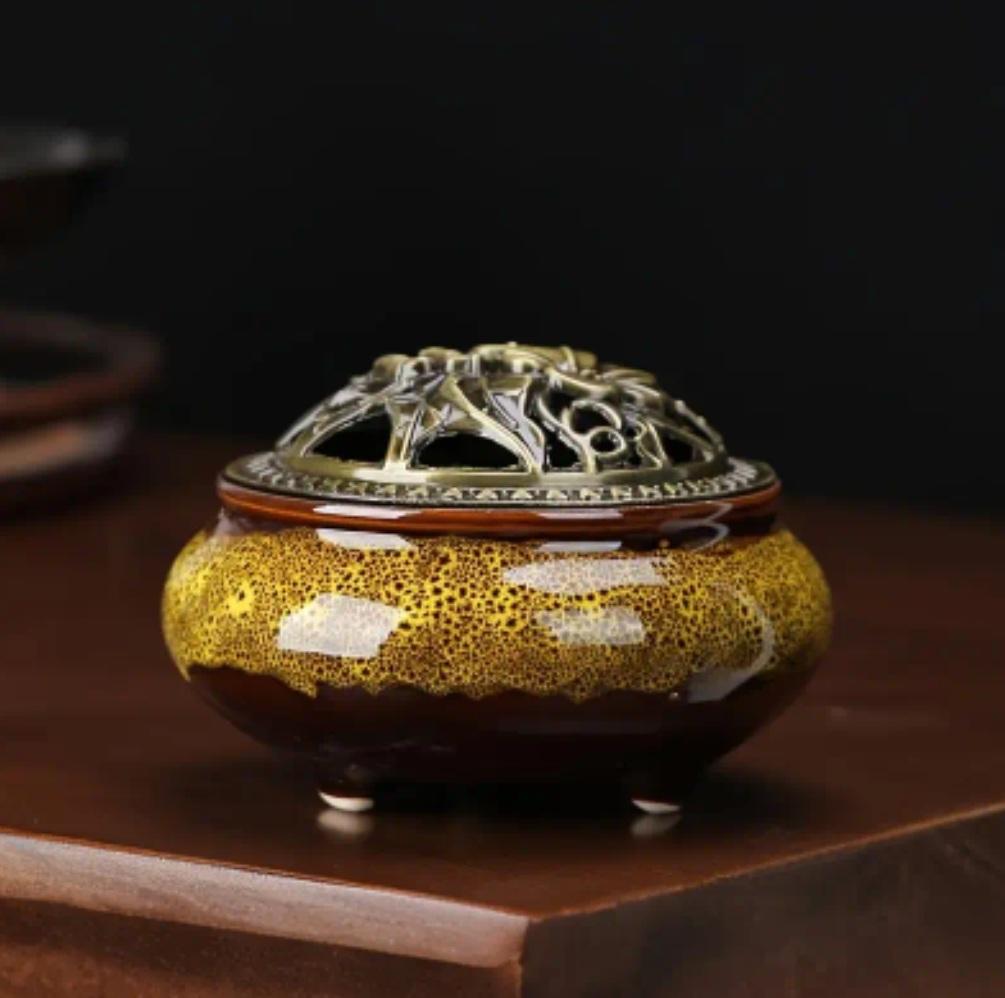 Quemador de cerámica y metal ideal para el incienso en espiral.