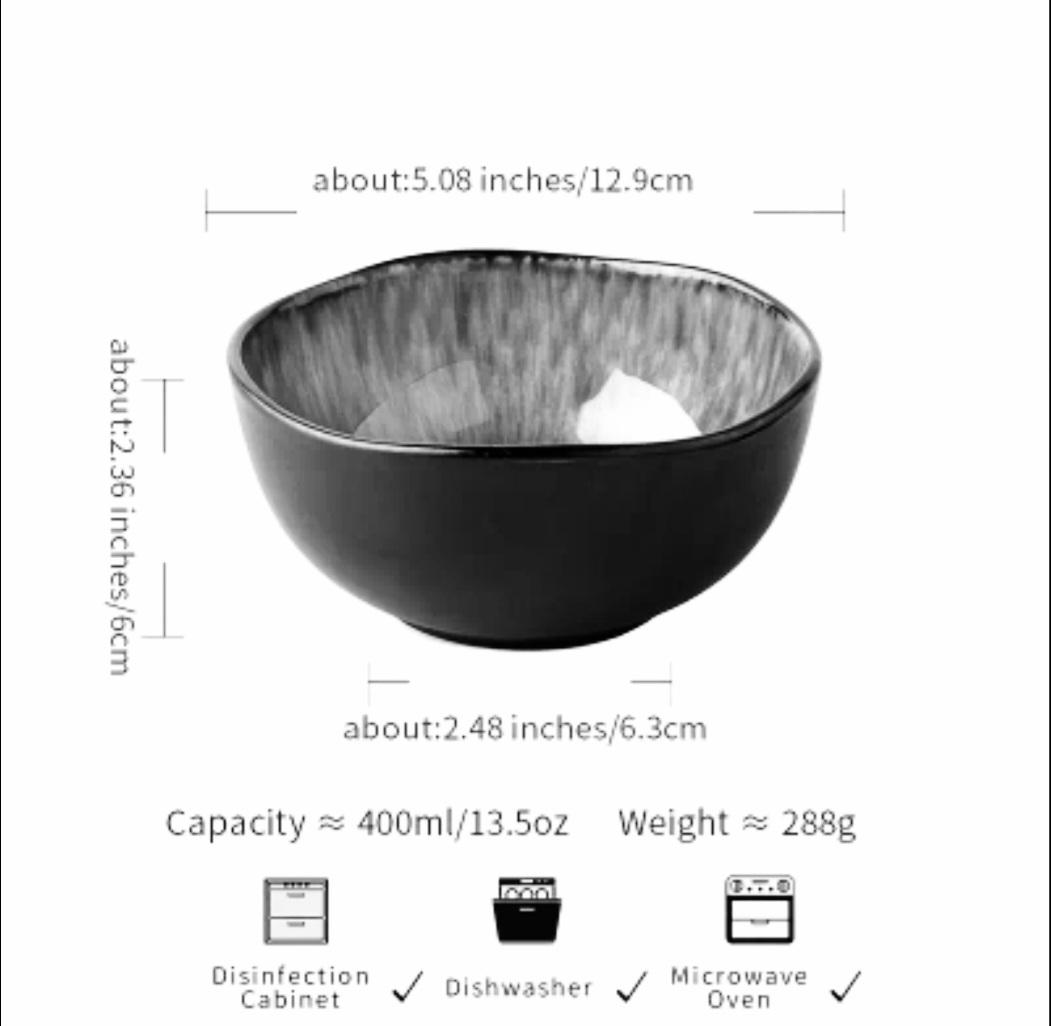 - Cuenco Gris Humo: exterior negro mate y un interior degradado en grises plateados; ideal para ramen, arroz o ensaladas.