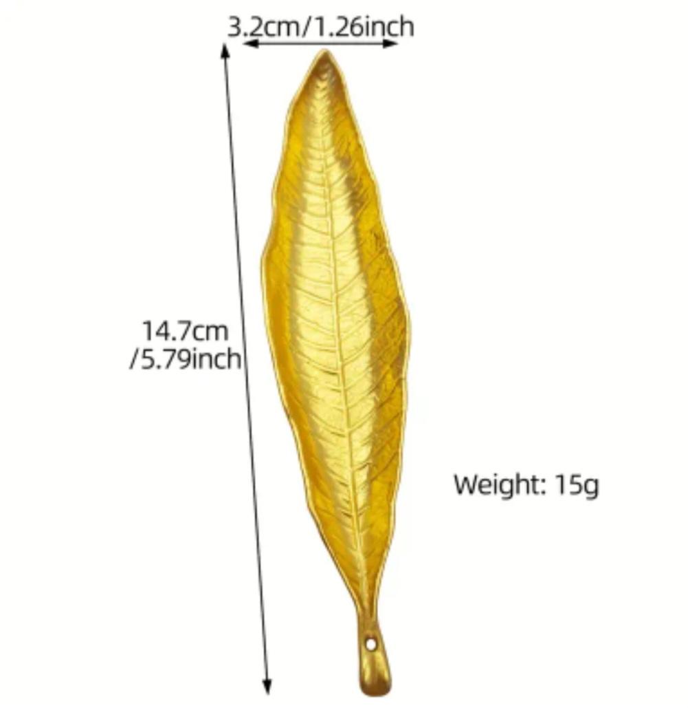 Elaborado en aleación metálica con acabados en tonos dorados, presenta el diseño de una hoja de planta.