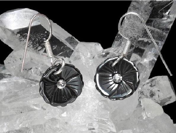 Pendiente flor hematite circonita plata.