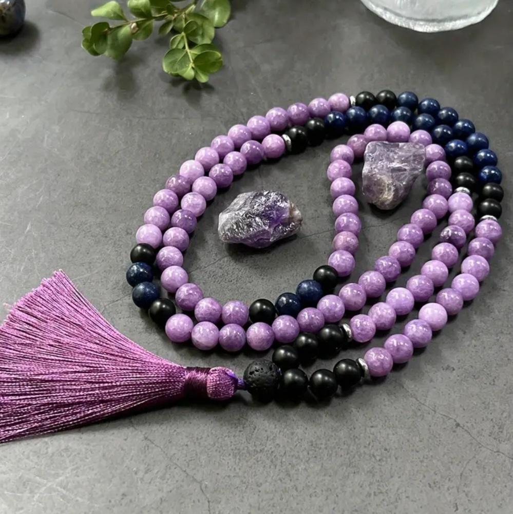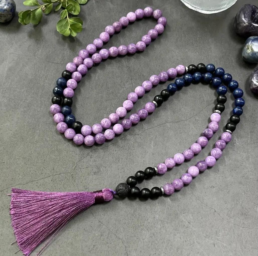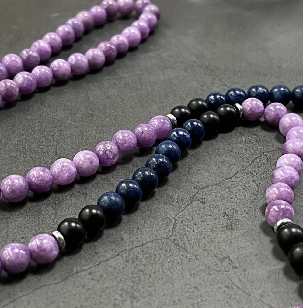 Colgante Mala Amatista, Obsidiana y Sodalita