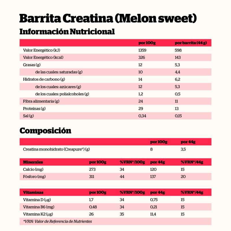 Barrita con 3,5 g de creatina Creapure® y 13 g de proteína. Ideal como snack o post-entreno. Contribuye al rendimiento físico y al desarrollo muscular.
